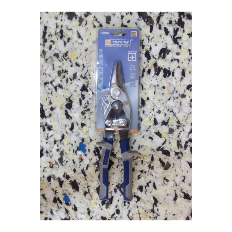 Professional straight-cut aviation snips made from hardened Cr-V steel for clean and precise cutting. Designed for cutting sheet metal with ease, featuring strong blades and ergonomic, non-slip handles for comfort and control. Ideal for workshop, construction, and metal fabrication work.