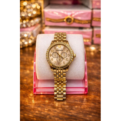 This sophisticated Ying Qu timepiece features a striking two-tone gold and silver link bracelet that complements any wardrobe. The clean silver sunburst dial is accented with classic Roman numeral markers and a textured gold-tone bezel, offering a high-end look suitable for both professional and evening wear.