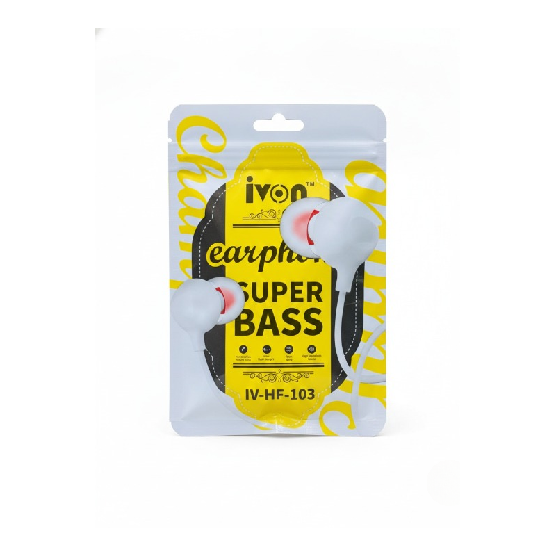 The IVON IV-HF-103 Super Bass Earphones are designed for powerful audio performance with deep bass and clear sound output. Built with a comfortable in-ear design, these earphones are ideal for long listening sessions without discomfort.