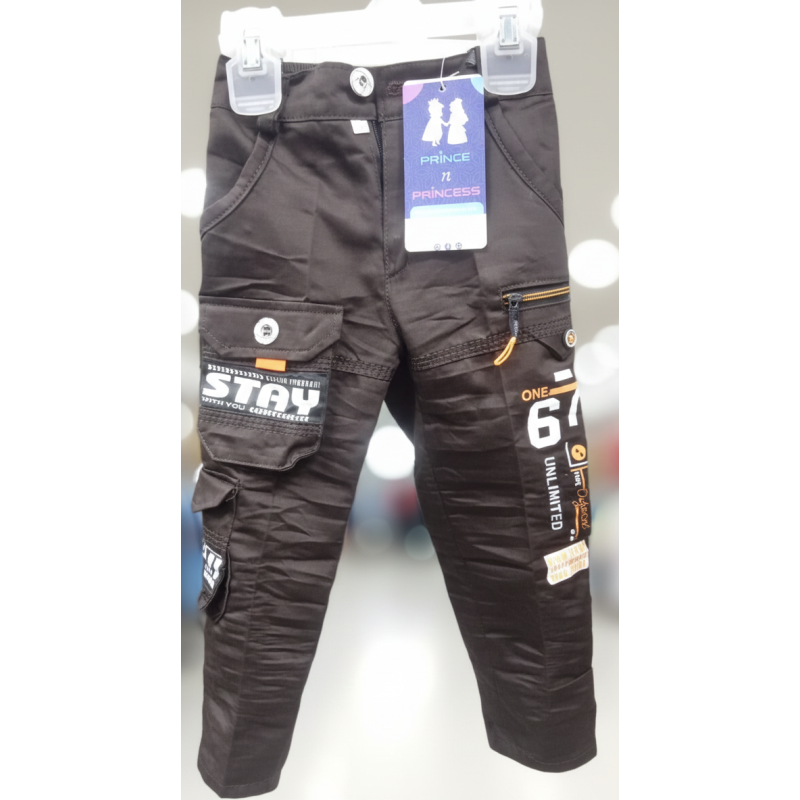 These Boys’ Utility Cargo Pants feature a sleek black design with bold graphic prints and contrast detailing for a modern, street-style look. Crafted with multiple functional pockets, including zipper and flap pockets, these pants combine style with practicality. The comfortable waistband and durable fabric make them ideal for everyday wear, outdoor activities, and casual outings.